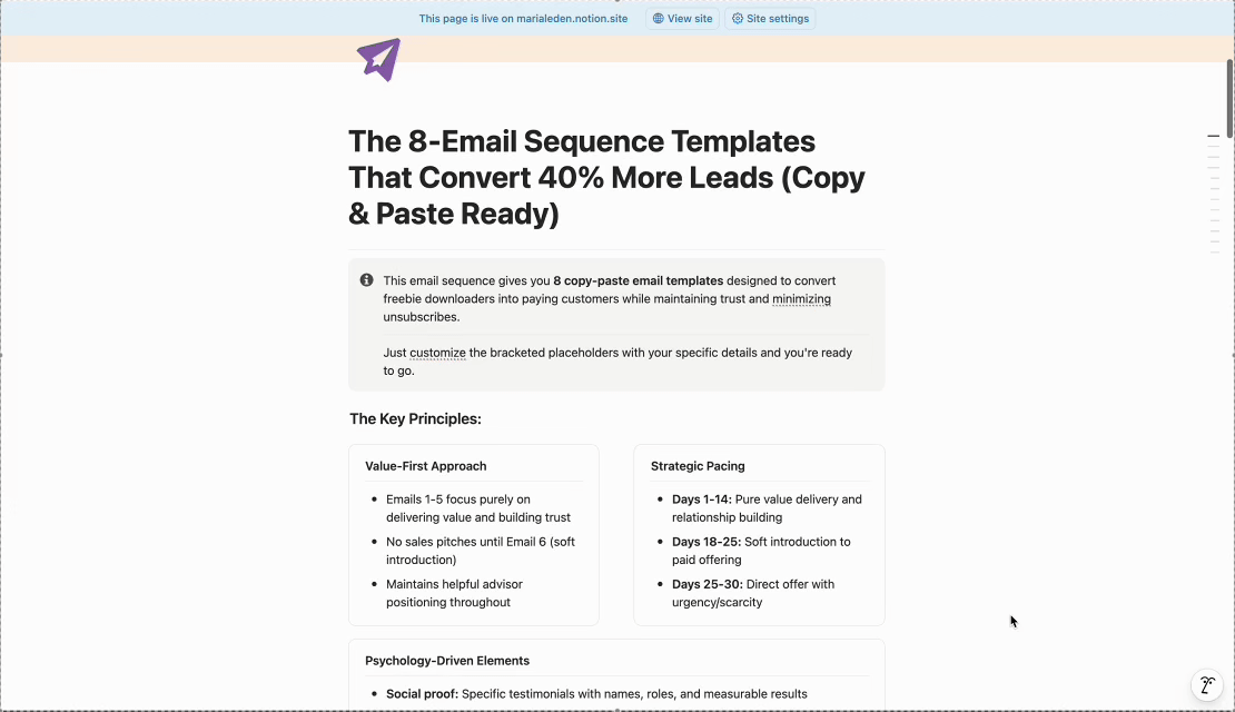 - 8 ready-to-send email templates you can copy - Easy-to-use Notion guide