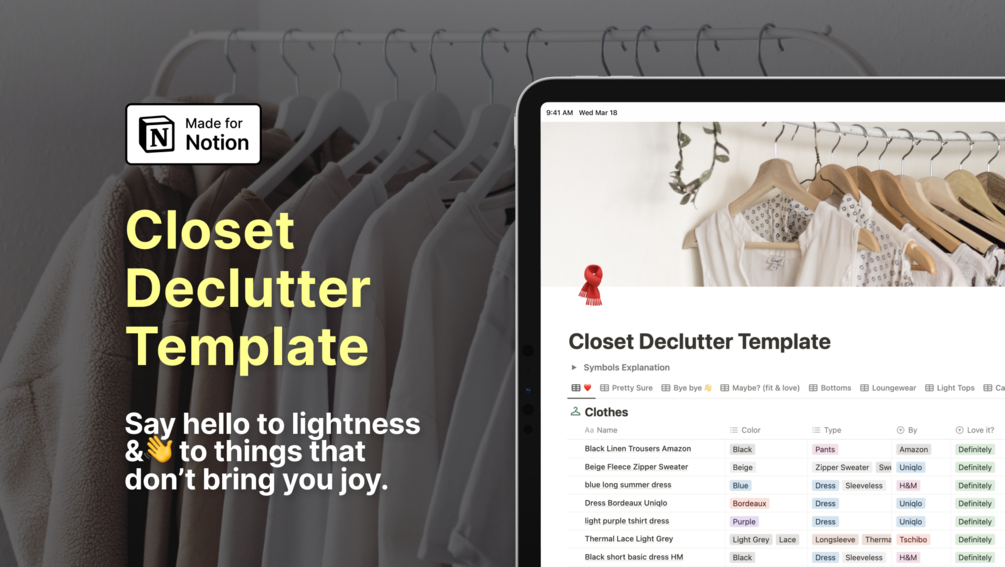 Declutter your Closet in 2024 - Notion Wardrobe Template | Fashion
