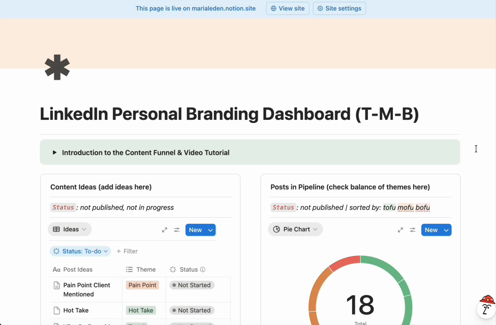 • Notion-based LinkedIn content dashboard / system you can copy directly to your Notion workspace to start using it.