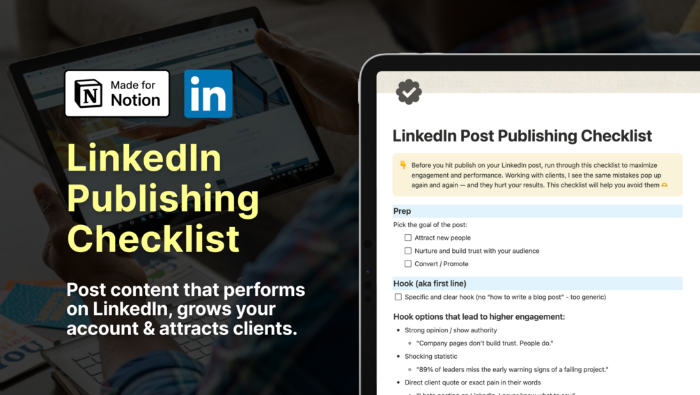 You'll get my free LinkedIn post publishing checklist that I use daily when publishing LinkedIn posts.