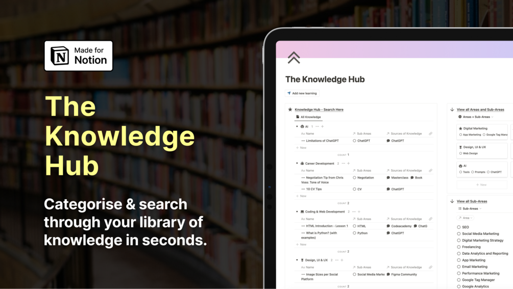 Knowledge Hub in Notion. Build your Second Brain with all of your Knowledge and Notes β In One Place.